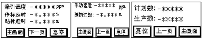 1) 自动速度:指剥标牵引电机自动状态下的速度,控制标签剥离速度;